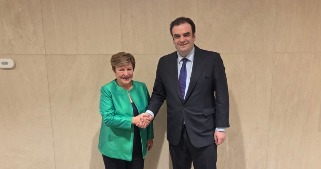Συνάντηση με τη Γενική Διευθύντρια του Διεθνούς Νομισματικού Ταμείου (ΔΝΤ) Kristalina Georgieva, πραγματοποίησε στην Ουάσιγκτον ο Υπουργός Εθνικής Οικονομίας και Οικονομικών και Πρόεδρος του Eurogroup, Κυριάκος Πιερρακάκης, στο περιθώριο των εργασιών της Εαρινής Συνόδου του ΔΝΤ.