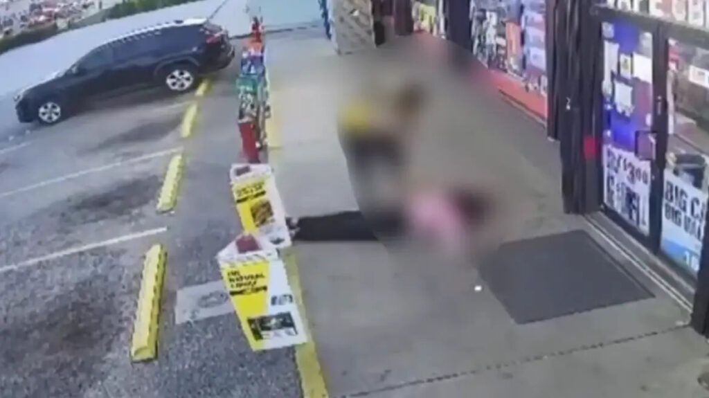 This is surveillance footage of Rolbert Joachin attacking and killing gas station clerk Nilufar Yasmin outside a Fort Myers, FL Chevron store on April 2, 2026, claiming Joachin is a Haitian illegal immigrant caught and released under Biden policies in 2022.